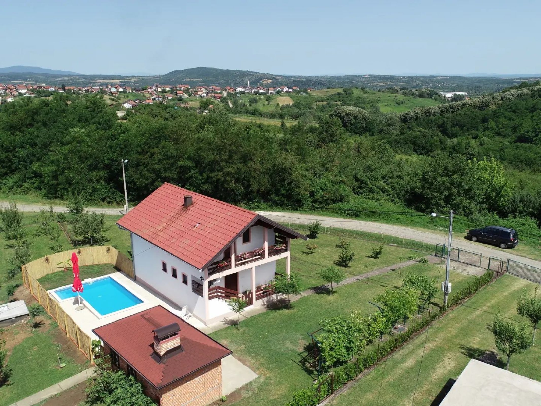 Посјед се налази у насељу Костур. Миран крај и пријатан амбијент, који се налази свега 2,5 километра од центра града, односно 800 м од магистралног пута на дервентској обилазници, може да задовољи све потребе појединца, групе или породице са капацитетом од 3 лежаја уз могућност постављања додатних помоћних лежаја. Кућа има дневни боравак, спаваћу собу, кухињу, купатило и тоалет, као и ходник и терасу. Од прољећа до љета, из околних шума и воћњака, посебно у предвечерје, шире се мириси багрема, липе и другог цвата. Узвишени терен током љета доноси чисти дашак свјежине након дневних врућина. Присуство биљке вистерије – дрвенасте пењачице са плаво-љубичастим цвјетовима у дворишту даје посебну магију по чему је овај кутак за одмор и добио име. Пјесма птица присутна је током цијеле ноћи до изласка сунца. Све су то једном ријечју дарови из природе, према којима нико не остаје равнодушан. У дворишту куће гостима је на располагању љетниковац са опремом за роштиљ, сач или котлић поред ког се налази базен.